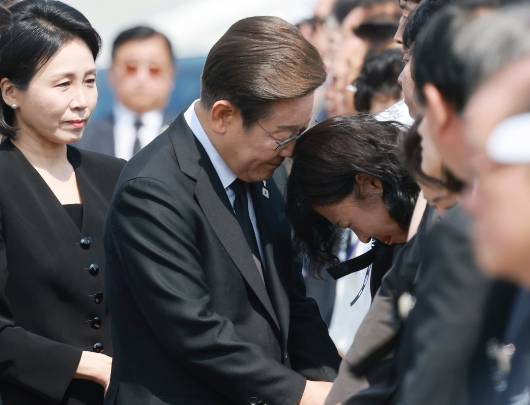 이재명 대통령은 이날 국립서울현충원에서 열린 제70회 현충일 추념식에 참석해 "보훈은 희생과 헌신에 대한 최소한의 예우이자 국가가 마땅히 해야 할 책임과 의무"라며 "모두를 위한 특별한 희생에는 특별한 보상이 주어져야 한다. 이재명 정부는 책임과 의무를 다하겠다"고 밝혔다. 이와 함께 윤석열 정부에서 삭감된 광복회 예산을 원상복구하라고 지시하기도 했다. 이 대통령은 배우자 김혜경 여사와 함께 지난달 초계기 추락사고로 순직한 고(故) 박진우 중령의 유족을 비롯해, 故 이태훈 소령, 故 윤동규 상사, 故 강신원 상사, 故 임성철 소방장의 유족들에게 위로의 뜻을 전했다. 사진=연합뉴스