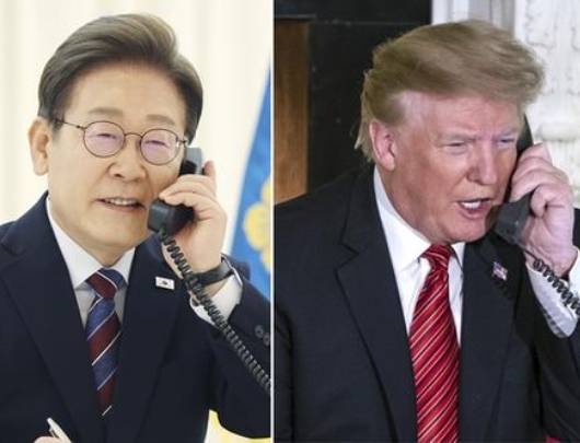 이재명 대통령은 이날 오후 10시쯤 취임 이후 처음으로 도널드 트럼프 미국 대통령과 통화했다. 대통령실에 따르면 양국 정상은 약 20분간 친근하고 격의없는 분위기 속에서 통화를 했다. 양 정상은 각자 겪었던 암살위험, 정치적 어려움 등을 나누기도 했다. 또, 각자의 골프 실력을 소개하고, 가능한 시간에 동맹을 위한 라운딩을 갖기로도 했다. 트럼트 대통령은 골프 애호가로 유명하다. 트럼프 대통령은 이 대통령에게 방미 초청을 했다. 앞서 트럼프 대통령과의 첫 전화통화가 지연된 것을 두고 국민의힘 한동훈 전 대표와 나경원 의원은 "이례적"이라며 지적한 바 있다. 사진=연합뉴스