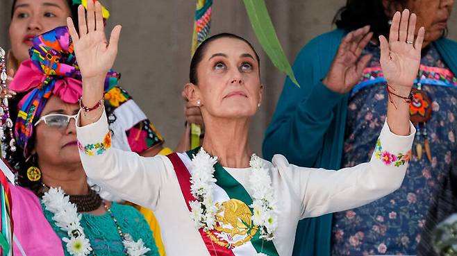 클라우디아 셰인바움 멕시코 대통령은 8일(현지시간) 열린 병원 개소식에서 미국 이민세관단속국이 최근 로스앤젤레스에서 구금한 이민자에는 멕시코 국적자 35명이 포함됐다고 밝혔습니다.