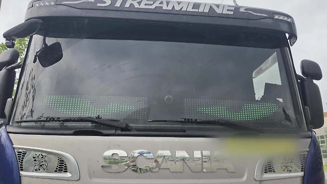 최근 일부 화물차 운전자들 사이에서 차 앞유리에 사람의 눈 모양을 한 LED 전광판 부착이 유행하고 있습니다. 일명 '악마의 눈' 이라고 부르는 장치입니다.