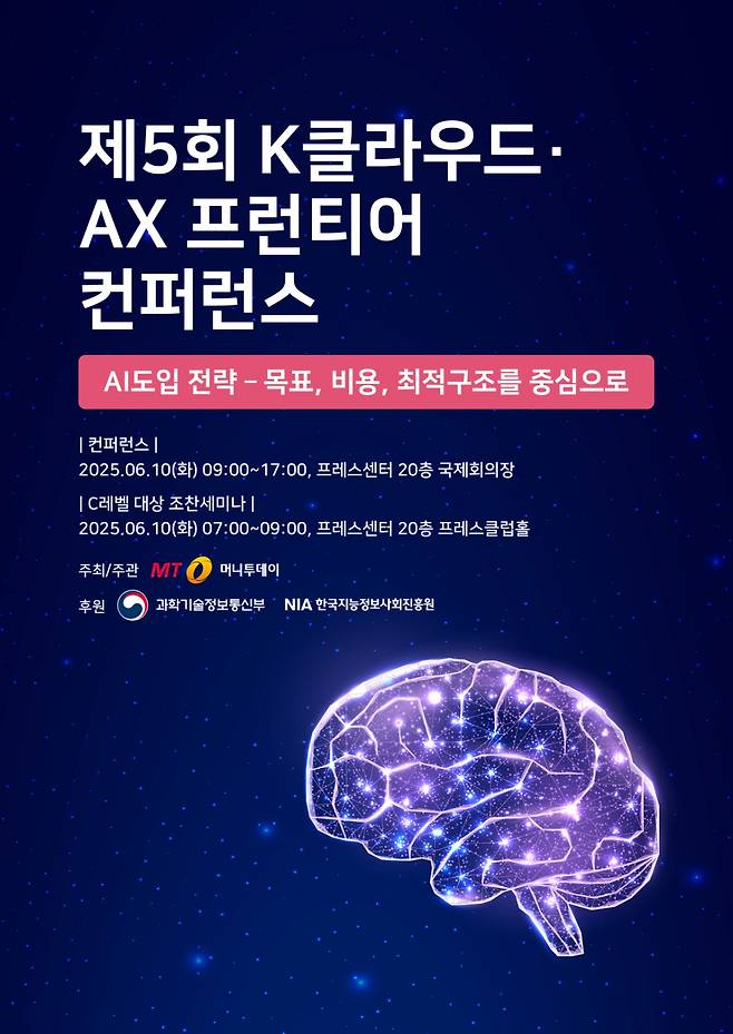 머니투데이는 이달 10일 서울 태평로 프레스센터 20층에서 '제5회 K클라우드·AX(인공지능 전환) 프론티어 컨퍼런스'를 개최합니다. 머니투데이가 주최하고 과학기술정보통신부, 한국지능정보사회진흥원(NIA)가 후원하는 이번 컨퍼런스는 민간·공공의 주요 기관·기업의 CIO(최고정보책임자) 등 IT 인프라 담당자님들과 CISO(최고정보보호책임자) 등 보안 전문가님들을 대상으로 클라우드 및 AI 도입 전략을 소개하고 관련 규제 환경 및 기술 트렌드에 대한 이해를 돕고자 마련됐습니다.