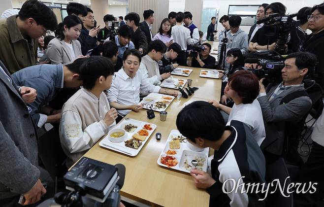 | ▲ 지난 5월 15일 이준석 개혁신당 대통령 후보가 서울 서초구 서울교대에서 학생들과 점심식사를 하며 이야기를 나누고 있다. |