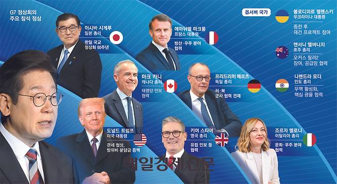 이 대통령은 한국이 정국 불안을 극복하고 ‘정상화’ 신호탄을 쐈다는 점을 강조할 전망이다. 미국·영국·독일·프랑스·이탈리아·캐나다·일본 정상과 상견례를 하며 새 정부의 외교정책 노선을 설명할 좋은 기회다.