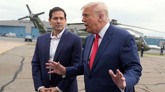 ▲ 기자들과 대화하는 트럼프 미국 대통령