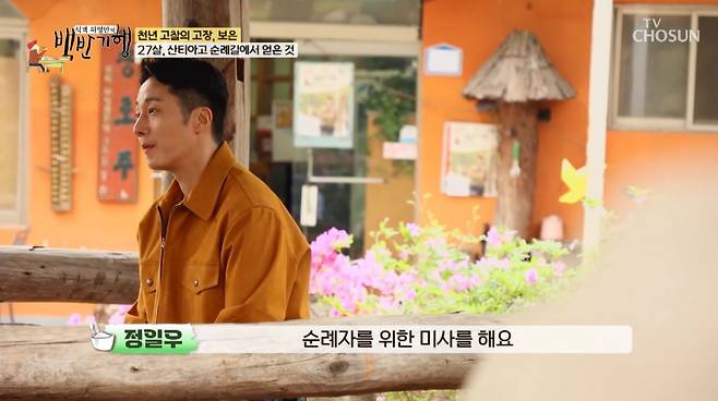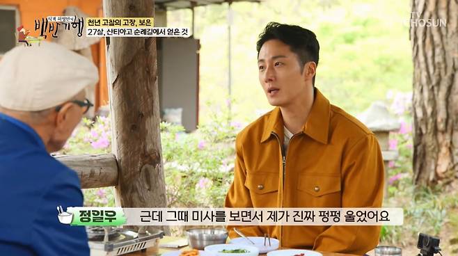 정일우는 "제가 산티아고를 3번 다녀왔다. 20대 때 한창 일하던 시기에 뇌동맥류 진단을 받았다. 눈앞이 깜깜해지더라. '내일 어떻게 될지 모르는데 일단 한 번 가보자' 생각했다"고 성지순례를 가게 된 계기를 밝혔다.