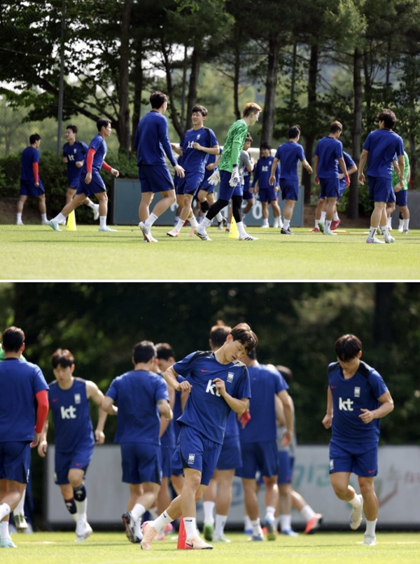 쿠웨이트전 유종의 미를 거두고자 하는 한국. 8일 오랜만에 파주 NFC를 찾아 훈련을 진행했다. 이재성을 비롯해 손흥민, 이강인, 황인범 등 주축 선수들은 환한 미소와 함께 회복 훈련에 나섰다. 오현규, 문선민, 최준 등 이라크전에서 선발로 뛰지 않았던 선수들은 강도 높은 러닝 훈련으로 몸을 끌어 올렸다.
