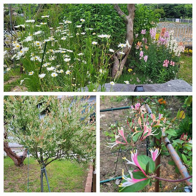 | ▲ 가꾸기 쉬운 식물 샤스타데이지와 금어초, 인동초, 샐릭스 |