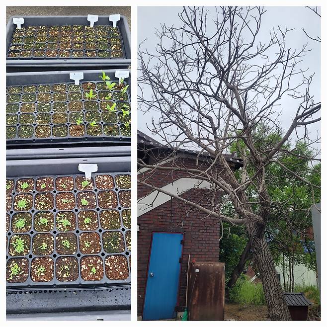 | ▲ 탄생과 죽음 새싹과 고사한 호두나무 |