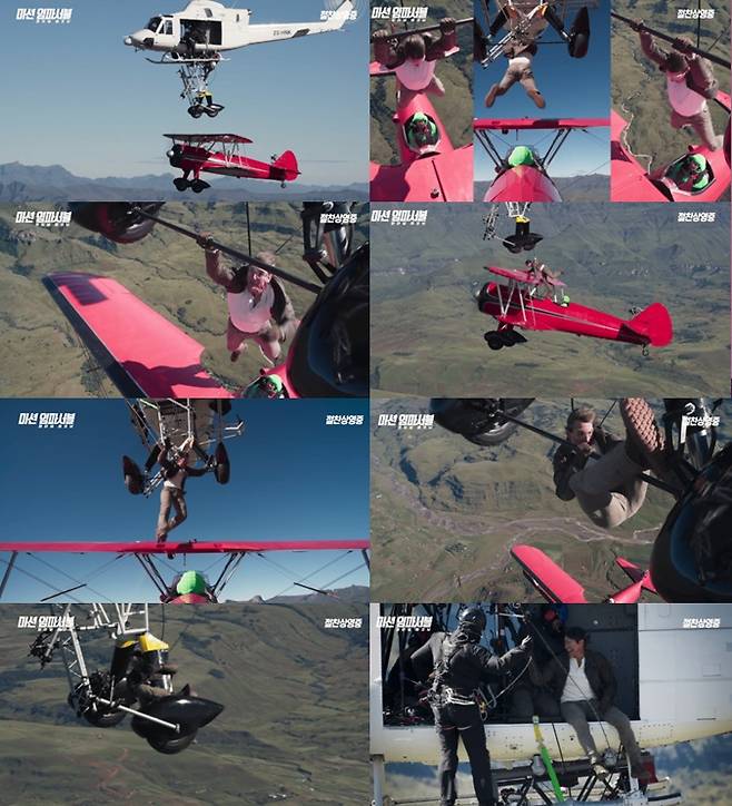 압도적인 풍경의 남아프리카공화국 드라켄즈버그 산맥 2,438m 상공에서 시속 225km의 엄청난 강풍을 견디며 촬영에 임한 톰 크루즈는 맨몸으로 비행기에 매달리고, 비행 중인 날개 위를 걷는 등 눈을 의심케 하는 액션 스턴트를 선보여 이목을 집중시킨다.