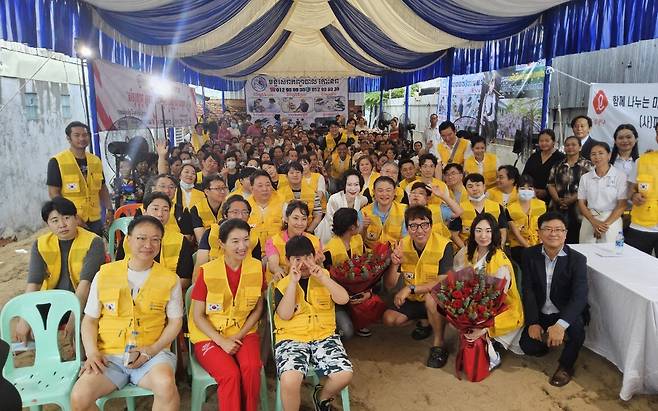 | ▲ 대한정형외과의사회(김완호)가 주관한 캄보디아 의료봉사에 롯데장학재단(장혜선)과 유명 당구선수 스롱 피아비가 함게 했다. |