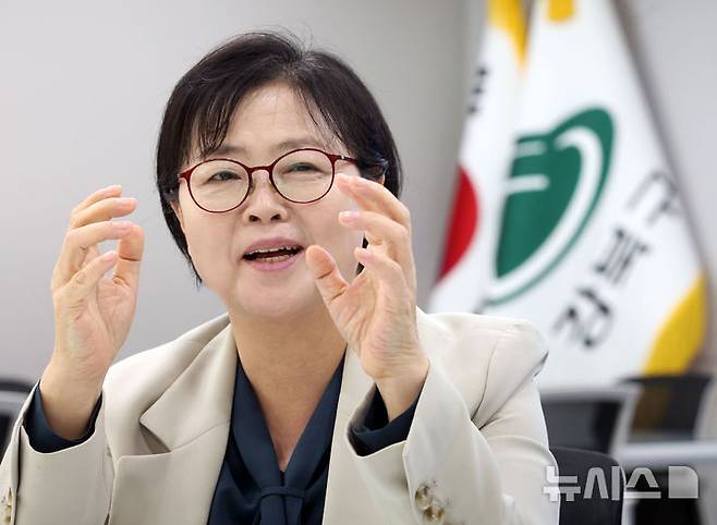 [서울=뉴시스] 홍효식 기자 = 이순희 강북구청장이 지난달 28일 서울 강북구청 집무실에서 뉴시스와 인터뷰하고 있다. 2025.06.09. yesphoto@newsis.com