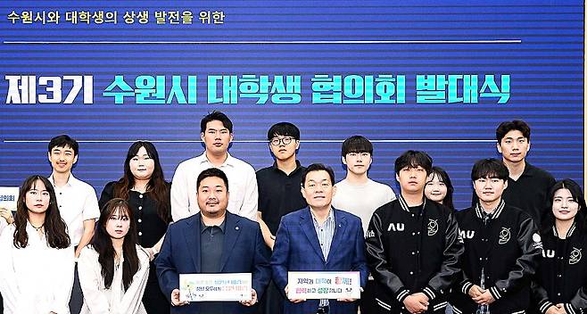 제3기 수원시 대학생협의회는 경기대학교·동남보건대학교·성균관대학교·아주대학교 등 4개 대학 총학생회장 등 학생 20명과 수원시 청년청소년과장, 수원시청소년청년재단 청년실장 등 22명으로 구성됐다.