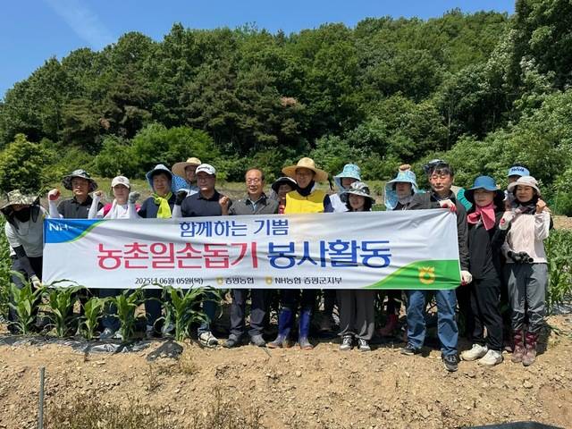 충북 증평농협(조합장 배종록)이 NH농협 증평군지부(지부장 연제문)과 함께 도안면 송정리의 연명희씨 농가에서 ‘농촌일손돕기’ 활동을 했다(사진).