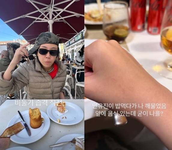 깨물린 붉은 자국이 남은 손등을 공개한 이영지는 "안유진이 밥 먹다가 나 깨물었음. 앞에 음식 있는데 굳이 나를?"이라는 귀여운 폭로로 막내들의 케미를 자랑했다.