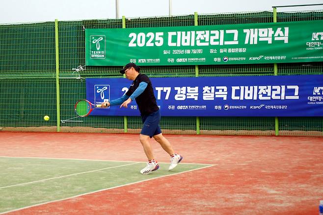 6월 7일, 경북 칠곡군 종합운동장 내 테니스장에서는 올해 테니스 디비전리그 첫 경기가 진행됐다. 생활체육 초급에 해당되는 T7 급수 경기가 이날로 배정됐고, 경북 칠곡군 관내 6개 클럽, 50여 명의 선수들이 출전했다.