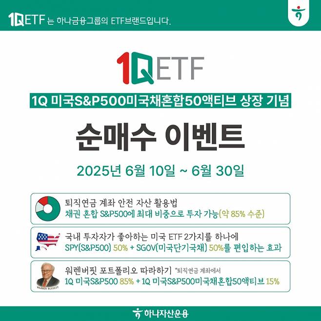 한편 하나자산운용은 이번 ETF 상장을 기념해 오는 10일부터 6월30일까지 순매수 이벤트를 진행한다. 자세한 내용은 1Q ETF 공식 홈페이지에서 확인할 수 있다.