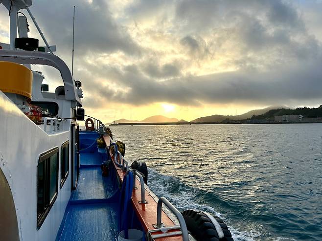 흑산도에서 진리에서 새벽에 대장도에 가는 배편을 선장님과 함께 타고 들어갔다. 이 배는 장도 주민을 흑산 항으로 이어주는 배편으로 흑산항에서 다시 주민을 싣고 오면 나는 나가야 한다. 렌즈에서 본 장도 습지는 구름 모자를 쓰고 있다. 가끔 구름 모자, 안개가 지나가곤 했다.