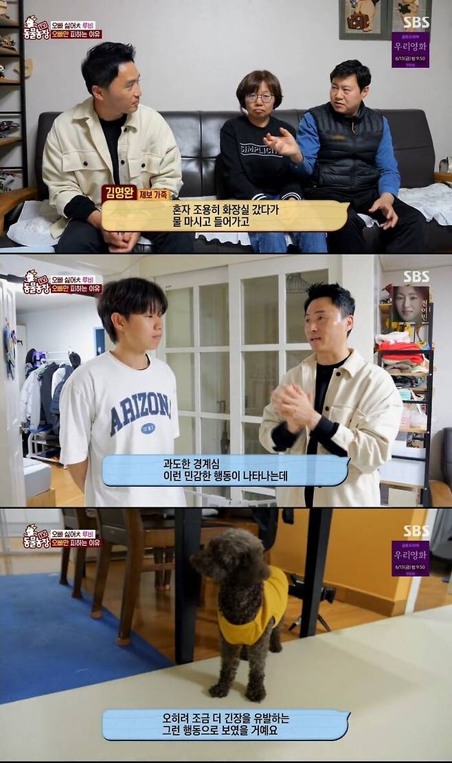 호겸 씨가 등장하는 순간 짖고, 숨고, 배변 실수까지 하는 루비의 반응에 가족들은 당황스럽기만 하다.
