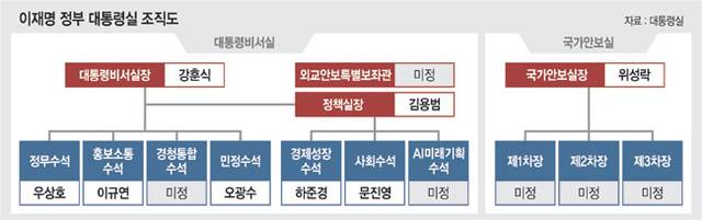 대통령실 수석비서관 중 남은 두 자리인 AI(인공지능)미래기획수석과 경청통합수석도 조만간 인선이 이뤄질 전망이다. AI 수석은 임문영 전 경기도 미래성장정책관, 박태웅 민주연구원 집단지성센터장, 구현모 전 KT 대표 등이 거론되고 있다.