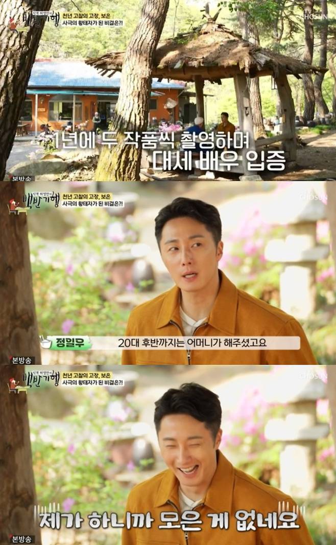 지난 8일 TV조선 '허영만의 백반기행'(이하 '백반기행')에서는 배우 정일우가 게스트로 출연했다.