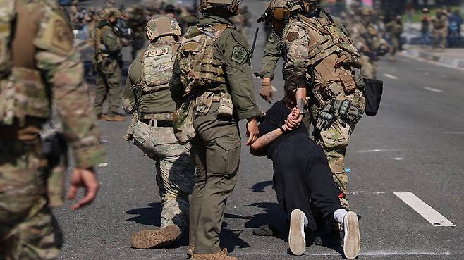 ▲ 7일(현지시간) LA 이민 단속 반대 시위 현장 투입된 요원들