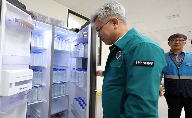 | ▲ 조해근 우정사업본부장이 지난해 6월 19일 오전 공주우체국을 방문해 여름철 폭염 및 호우 대비 현장의 준비상황을 점검하고 있다. |