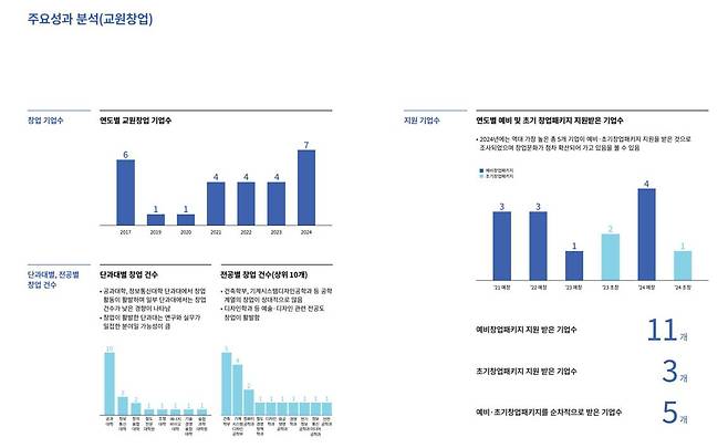 고무적인 것은 2020년 이후부터 학부 창업과 졸업 동문 창업, 대학원 창업 건수가 극적으로 늘어난 것이다. 기술과 상품, 서비스 등 연구 성과의 사업화 결과물인 교원 창업 건수도 늘었다. 이렇게 태어난 학생과 교원 창업 기업들이 예비·초기창업패키지와 같은 주요 창업지원사업에 지원, 합격한 건수도 상승세다. 서울과학기술대학교 창업지원단은 창업 친화적인 교육과 연구 환경, 체계적인 창업 지원 프로그램을 성과의 비결로 꼽는다.