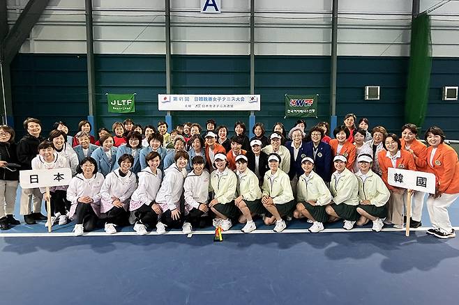 한국 여자 생활체육 대표팀이 제41회 한일친선여자테니스대회에서 일본 대표팀을 2-1로 꺾었다.