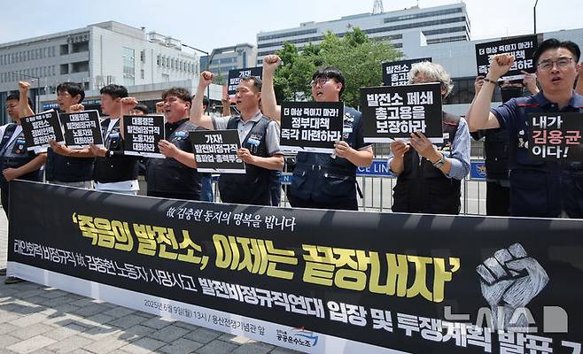 발전비정규직연대는 기자회견에서 정규직화 및 총고용 보장 대책을 요구하며 올 여름 전력피크 시기 조직적 공동파업을 예고했다. 2025.06.09. kgb@newsis.com