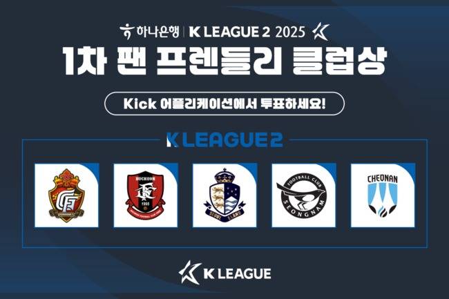 한국프로축구연맹(총재 권오갑, 이하 '연맹')이 2025시즌 1차 K리그2 '팬 프렌들리 클럽상' 팬 투표를 이달 10일(화)부터 12일(목)까지 3일간 실시한다.