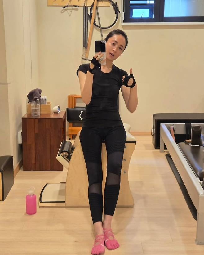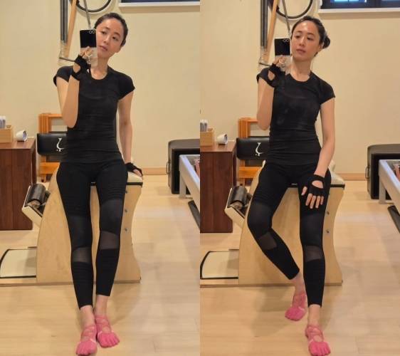 '발가락 양말'의 러블리한 컬러감이 운동복의 단조로움을 깨뜨리며, 발레핏을 연상시키는 스트랩 디자인으로 활동성까지 높였다. 여기에 손등을 감싸는 블랙 피트니스 글러브를 착용해 전문성을 더했고, 메이크업을 최소화한 채로도 빛나는 피부 톤과 또렷한 이목구비로 독보적인 '동안 미모'를 과시했다.