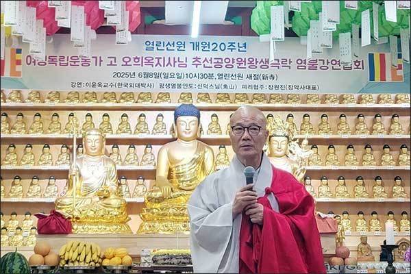 유일한 생존 여성독립운동가였던 오희옥 지사( 1990년 애족장, 1926-05-07 - 2024-11-17)께서 6개월여 전에 영면에 드신 것을 기억하시고 열린선원 20돌 개원과 함께 의미 있는 시간을 마련하고자 한 무상법현 스님의 마음에 감복하였다. 그렇게 마련된 자리가 어제 열린선원 개원 20돌 행사였다.