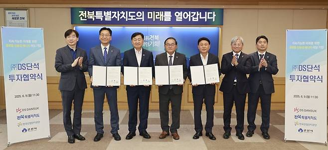 전북특별자치도는 9일 군산시와 함께 친환경 에너지 선도기업 ㈜디에스단석과 총 1조 900억원 규모의 대규모 투자협약(MOU)을 체결했다고 밝혔다.