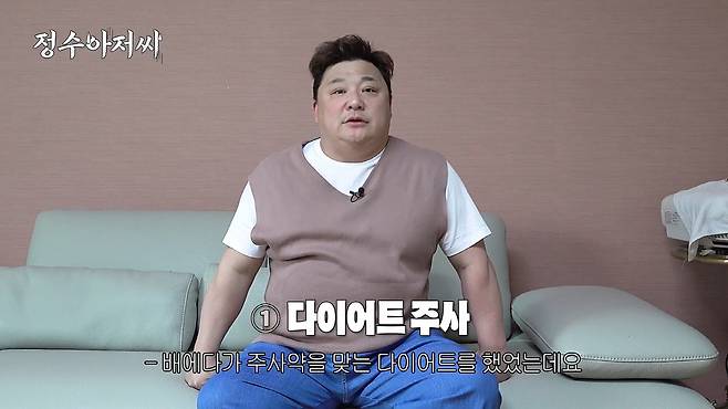 영상에서 윤정수는 "다이어트 주사와 지방 흡입 등 다양한 다이어트를 시도해 봤지만 효과는 그때뿐이고 요요가 오고 오히려 체중이 더 늘었다"며 "지방 흡입 후에 배가 너무 딱딱해지고 딱딱해진 배가 장기를 눌러 숨쉬기가 힘들 정도로 어려움이 있다"고 털어놨다.