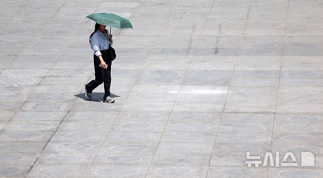 [서울=뉴시스] 김선웅 기자 = 서울 낮 최고기온이 30도를 기록한 9일 서울 종로구 광화문광장에서 양산을 쓴 시민이 길을 걷고 있다. 2025.06.09. mangusta@newsis.com