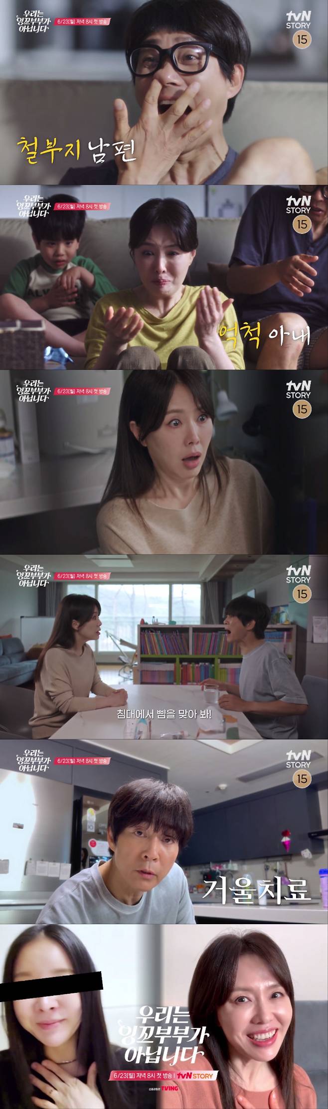 실제 부부의 사연을 드라마 형식으로 재구성, 문제적 부부로 완벽 빙의한 최수종·하희라 부부의 메소드 연기가 빛나는 '우리는 잉꼬부부가 아닙니다'는 오는 23일 저녁 8시 tvN STORY에서 첫 방송된다.