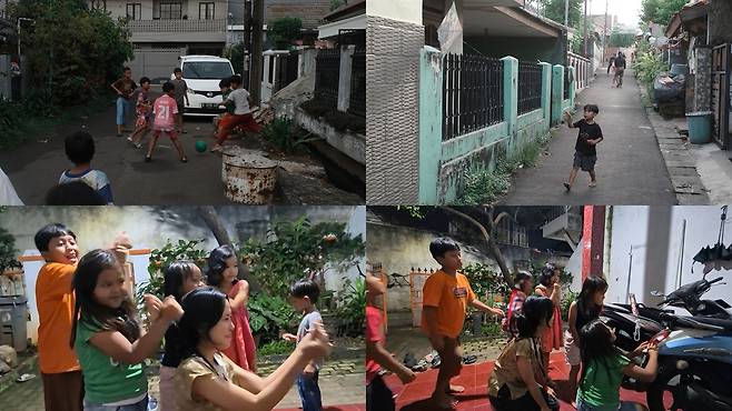 | ▲ 인니 탕에랑 동네 아이들 인니 탕에랑 동네 아이들이 노는 모습 |