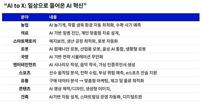 특히 한국은 중국, 일본을 제외하면 제조업 경쟁력을 유지하고 있는 몇 안 되는 선진국이다. 산업화 과정에서 축적된 방대한 산업 데이터와 인프라를 보유하고 있어, 'AI to X' 분야의 프로토타입 테스트와 대규모 사업화에 최적의 환경을 갖추고 있다. 글로벌 경제 불안과 기존 산업 구조의 한계 속에서도 AI는 새로운 패러다임을 열고 있다.
