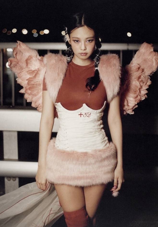핑크빛으로 천사의 날개가 달린 의상은 옷 한가운데 ‘+82’라고 새겨져 있으며 대한민국의 국가 번호를 표현하고 있다.