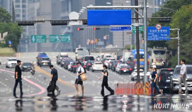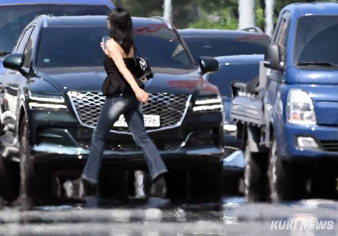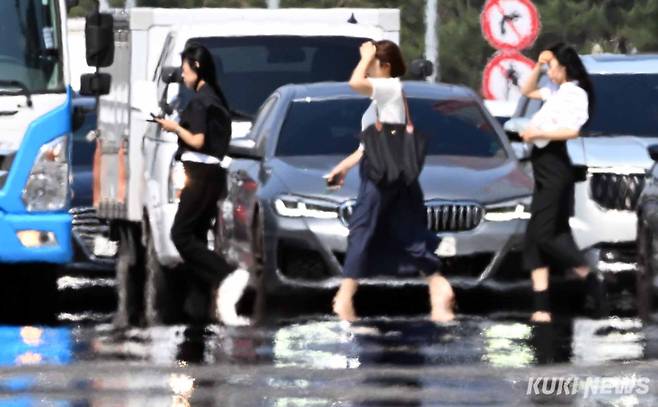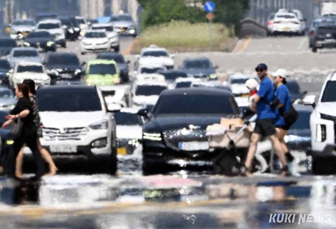 9일 내륙을 중심으로 낮 최고기온이 30도 가까이 오르는 등 무더운 날씨가 이어지면서 아스팔트 위로 아지랑이가 관측되고 있다.