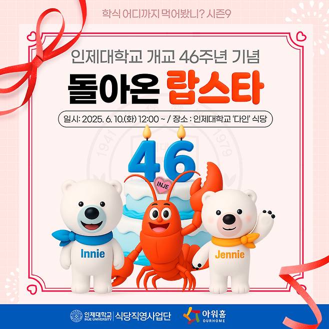 인제대가 개교 46주년을 맞아 10일 김해캠퍼스 다인 학생식당에서 프리미엄 학식 이벤트 '학식 어디까지 먹어봤니 시즌9 돌아온 랍스터'를 개최한다.