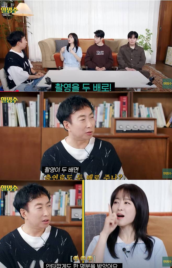 특히 쌍둥이 자매로 1인 2역, 이에 더해 이들이 삶을 바꾸면서 유미래인 척하는 유미지와 유미지인 척하는 유미래까지 총 4명의 인물을 연기하고 있는 점을 짚으며 칭찬을 이어가는 댓글이 눈길을 끌었다. 이에 대해 박명수는 촬영을 두배로 이어가고 있는 박보영에게 "출연료를 더 주는건 없었냐"고 묻기도 해 시선을 모았다.