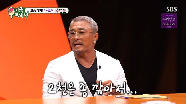이에 추성훈은 “아내가 벌어들인 돈은 그 사람의 몫이라고 생각한다”며 “내가 달라고 하는 건 의미가 없다. 본인이 열심히 일해서 번 돈을 본인이 쓰는 게 맞다”고 쿨하게 답했다. 이어 그는 “나도 아내에게 정확하게 얼마 버는지 말하진 않는다. 예를 들어 1억 원을 벌면 8천만 원 정도로 깎아서 말하곤 한다”며 너스레를 떨었다.