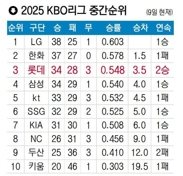 이날 감보아의 호투에 힘입어 롯데는 34승 28패 3무로 단독 3위에 다시 올라섰다.