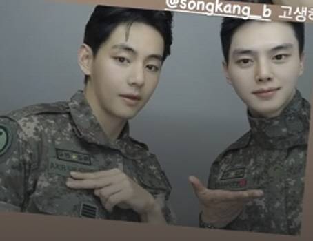 BTS 뷔가 전역을 하루 앞두고 송강과 마지막 군인 셀카를 남겼다.