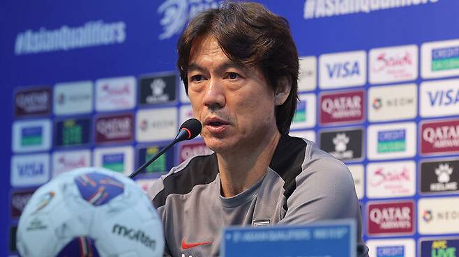 ▲ 대한민국 축구 국가대표팀 홍명보 감독이 쿠웨이트와의 2026 북중미 월드컵 아시아 3차 예선 최종전을 하루 앞둔 9일 서울월드컵경기장에서 기자회견을 하고 있다.