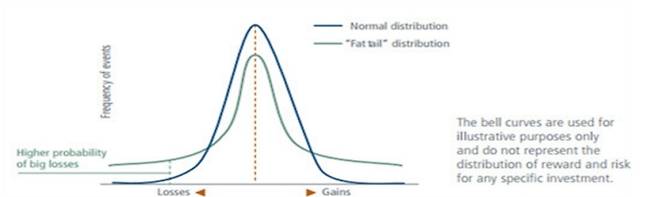 금융위기 이후에는 정규 분포 꼬리가 너무 두터워져 평균에 집중되는 확률이 낮아 예측력이 떨어지는 팻 테일 리스크(FTR fat tail risk)가 자주 목격돼 왔다. 꼬리 부분이 두텁지 않아야 평균값의 의미가 강해지고 통계학적 예측력이 높아지는데 꼬리가 두터워지면 평균값의 의미가 떨어져 예측이 어려워진다.