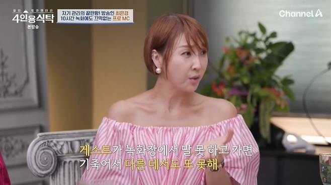 9일 방송된 채널A '절친 토큐멘터리-4인용 식탁'에서는 최은경, 이경제, 김영희, 김새롬이 등장했다.