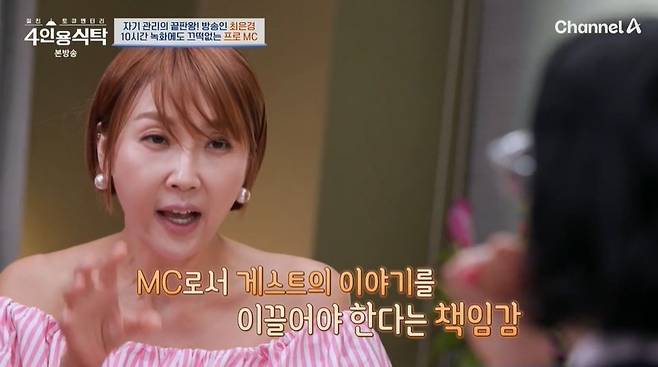 최은경은 "요즘은 쉬냐"는 질문에 "일을 다 그만두진 못하겠지만, 좀 정리하면서 안식년을 주긴 해야겠다고 생각했다"라고 밝혔다. 특히 최은경은 "(방송하면서) 1분 1초도 쉬거나 딴짓하거나, 최선을 다하지 않은 순간이 없다"라고 강조하며 "게스트들이 속상하지 않게 준비해 온 걸 모두 얘기하고 가게 하고 싶었다. 녹화장에서 말 못 하고 가면 기죽어서 다른 데서도 또 못하지 않냐. 그 속상함을 내가 잘 알아서 게스트가 인터뷰한 내용은 다 하게 해주고 싶었다"라며 MC로 최선을 다했던 순간들을 떠올렸다.