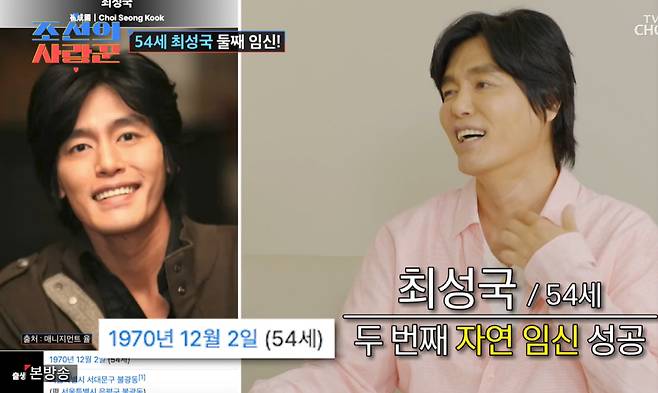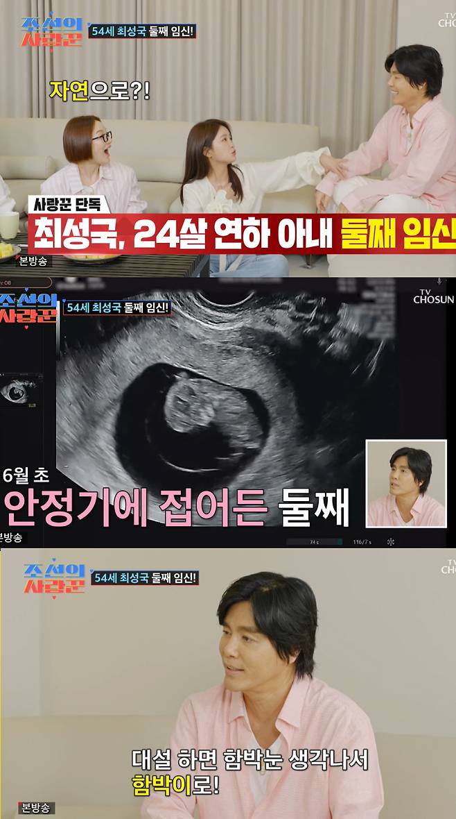 최성국은 "이번에도 자연임신"이라며 "24살 연하 아내가 지금 입덧중이라 제가 힘들다"고 말해 모두의 질타를 받았다. 패널들은 "아내가 입덧하는데 왜 자기가 힘드냐"며 "54세에 자연임신으로 두 아이를 가졌다니 상남자"라고 추켜세웠다.